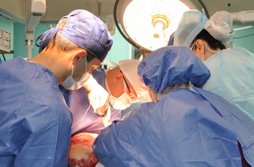 Врачи НМИЦ онкологии выявили опухоль матки, прорастающую в переднюю область пупочного кольца с образованием свища. Была назначена операция. Вмешательство выполнил генеральный директор онкоцентра, академик РАН Олег Кит . Понадобилось четыре хирурга-ассистента, чтобы держать огромное новообразование на весу.