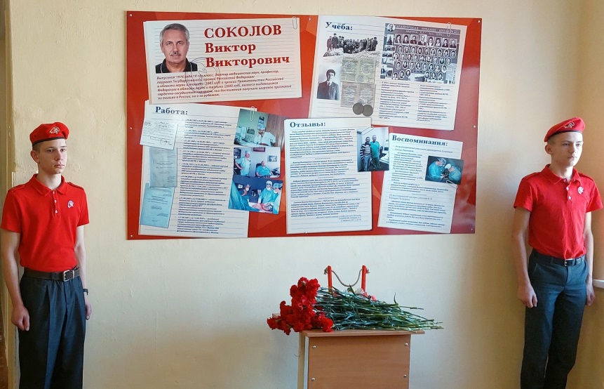 Он пожелал старшеклассникам, чтобы их будущий труд также оценили по достоинству, приведя пример — в НИИ скорой помощи им. Н.В. Склифосовского в 2007 году специально «под Виктора Соколова» открыли отделение, которым он руководил с 2007 года до времени своей гибели в августе 2020 года. Врач спасал пациентов, проводя многочасовые операции, подготовил много учеников — высококлассных специалистов в своей сфере.